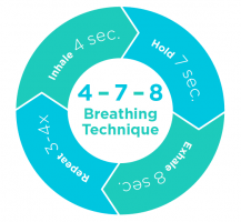 Note that you always inhale quietly through your nose and exhale audibly through your mouth. The tip of your tongue stays in position the whole time. Exhalation takes twice as long as inhalation. The absolute time you spend on each phase is not important; the ratio of 4:7:8 is important. If you have trouble holding your breath, speed the exercise up but keep to the ratio of 4:7:8 for the three phases. With practice you can slow it all down and get used to inhaling and exhaling more and more deeply.