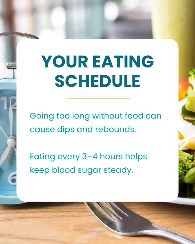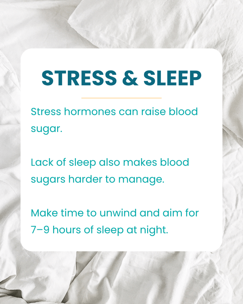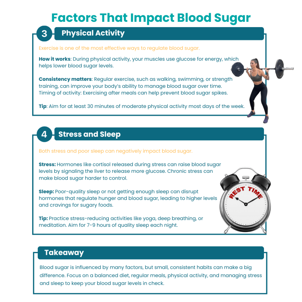 By tuning into your body’s responses and building simple, consistent habits—structured meals, mindful breathing, restorative sleep, and gentle movement—you can train your nervous system to stay calm and your blood sugar to stay stable.